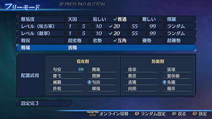 *The Weapon Level and officer abilities for Player 2 will be set to match those of Player 1.