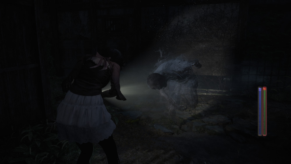 Spirits can appear when least expected. They may grab Mio's hand when reaching for an item, or await beyond a door recently opened, reminding players that danger lurks in every shadow.